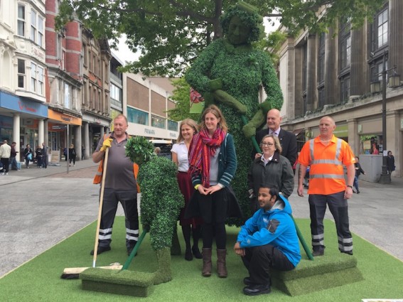 A giant topiary like sculpture has been unveiled in Nottingham today in a bid to encourage shoppers to keep the streets clean.