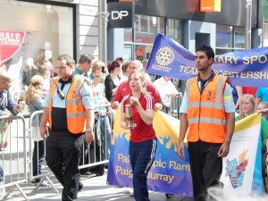 At 1.30 pm huge crowds gathered to watch Leicester’s inspirational flame ambassador 18 year old Paige Murray lead a parade from Gallowtree Gate to the stage in front of the BBC Big Screen on Humberstone Gate.