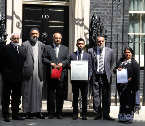 Community and faith leaders along with a member of the local parliament travel to 10 Downing Street to present the ‘One Leicester’ Peace Flag produced…